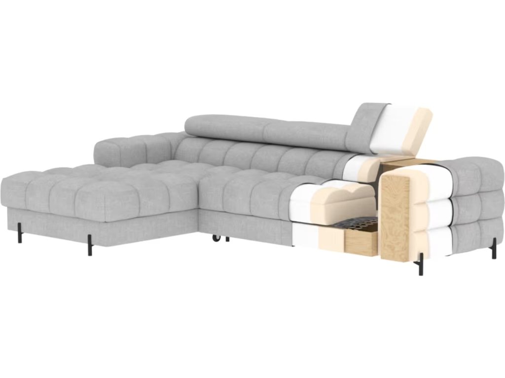 Sedací souprava Felro zaujme svým měkce tvarovaným, nadýchaným vzhledem a charakteristickým prošíváním, které dodává celému modelu eleganci i nádech luxusu. Nadýchané prošití sedáku, opěráku i područek vytváří jemný dekor, který posouvá vzhled soupravy na vyšší úroveň. Díky tvaru do L pohodlně usadí celou rodinu a stane se dominantou vašeho obývacího pokoje.