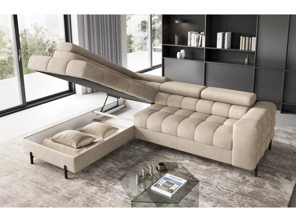 Souprava je vybavena funkcí rozkladu na lůžko o rozměru 123 × 195 cm, která je ideální pro příležitostné spaní. Nechybí ani velký úložný prostor (180 × 92 × 17 cm), kam pohodlně uložíte lůžkoviny nebo deky. Pro maximální komfort při sezení jsou k dispozici tři polohovací záhlavníky, které si každý uživatel může nastavit podle potřeby.