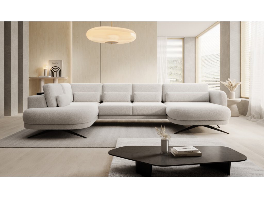 Sedací souprava Ilusio je prostorná a stane se dominantou každého obývacího pokoje. Její hladký povrch bez prošití a zaoblený otoman působí elegantně a originálně. Celkový dojem dotvářejí kovové držáky opěradla a výrazné černé nožky vysoké 17 cm, které dodávají sedačce nadčasový charakter a zároveň umožňují snadný úklid vysavačem pod sedačkou.