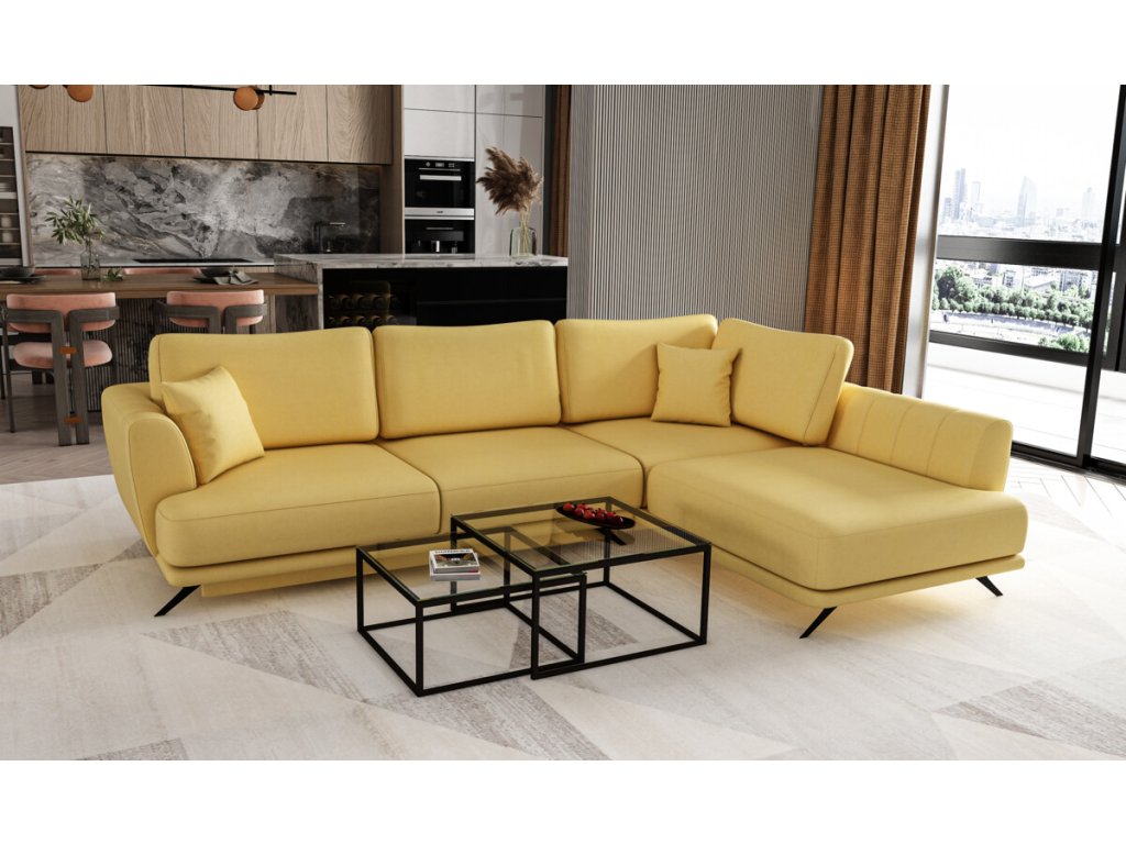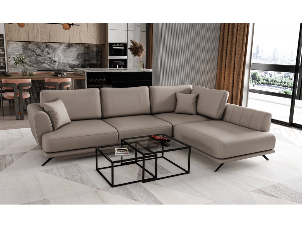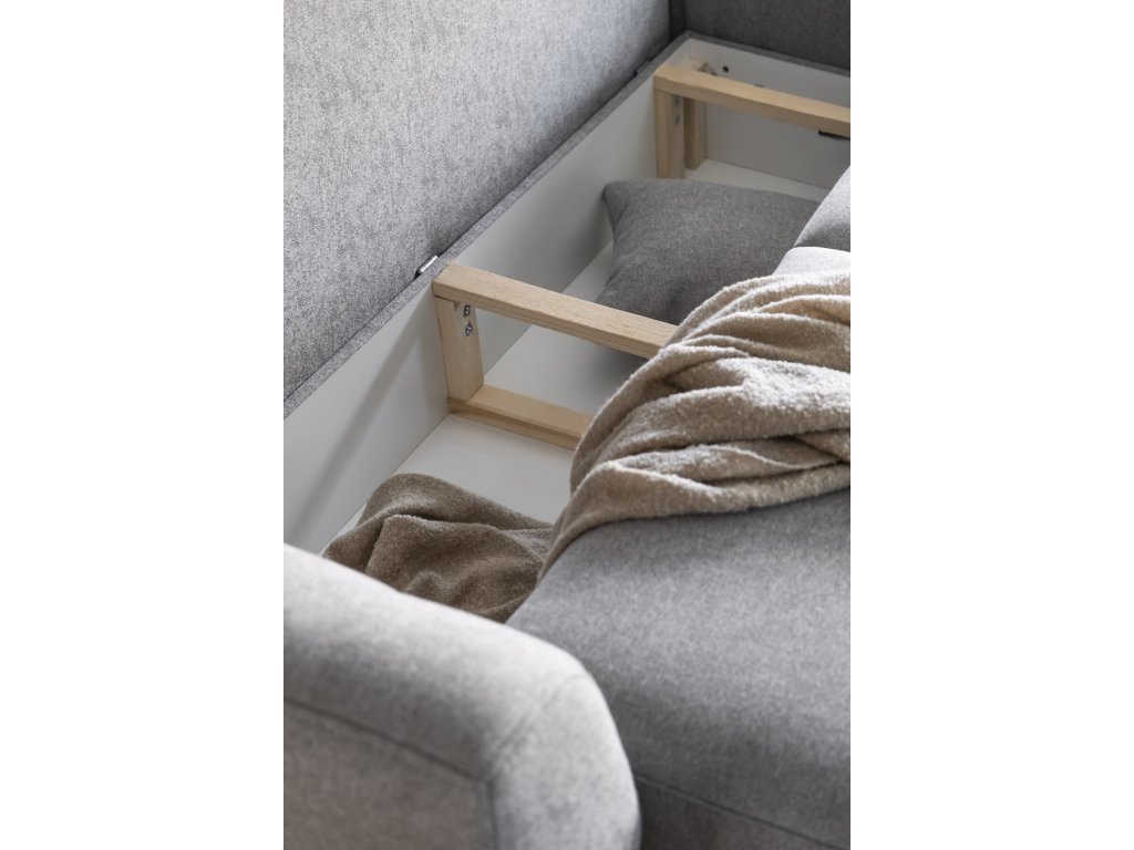 Precizně zpracovaný kousek sedacího nábytku, jež bude místem příjemného odpočinku a setkávání s rodinou a přáteli. Za povšimnutí stojí elegantní detaily, jako je vertikální prošívání na opěrce u otomanu, vyšší nohy, opěrné polštáře a v neposlední řadě dekorační polštáře ve stejné látce. Sedací soupravu snadno rozložíte na lůžko pro občasné přespání. Nechybí ani praktický úložný prostor na lůžkoviny. V nabídce levé i pravé provedení a velký výběr potahových látek.
