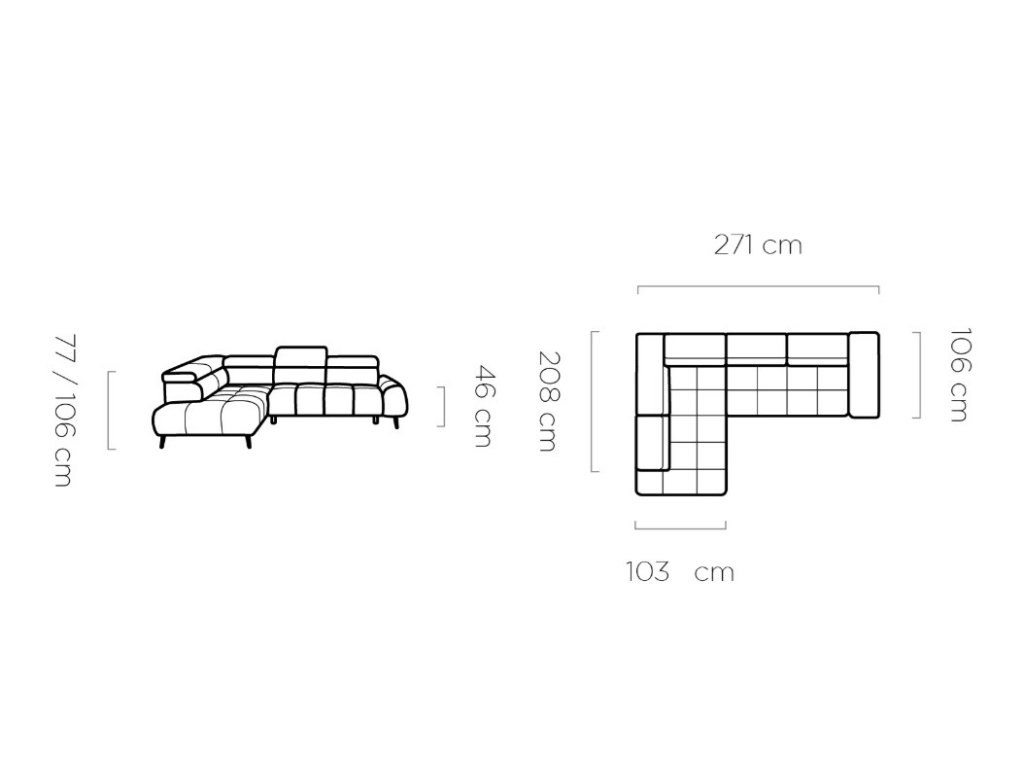Souprava je vybavena elektrickým systémem posuvu sedu s plynulou regulací. Díky tomu můžete změnit hloubku sezení až o 27 cm – od klasického pohodlného posezení až po hlubší relaxační polohu.