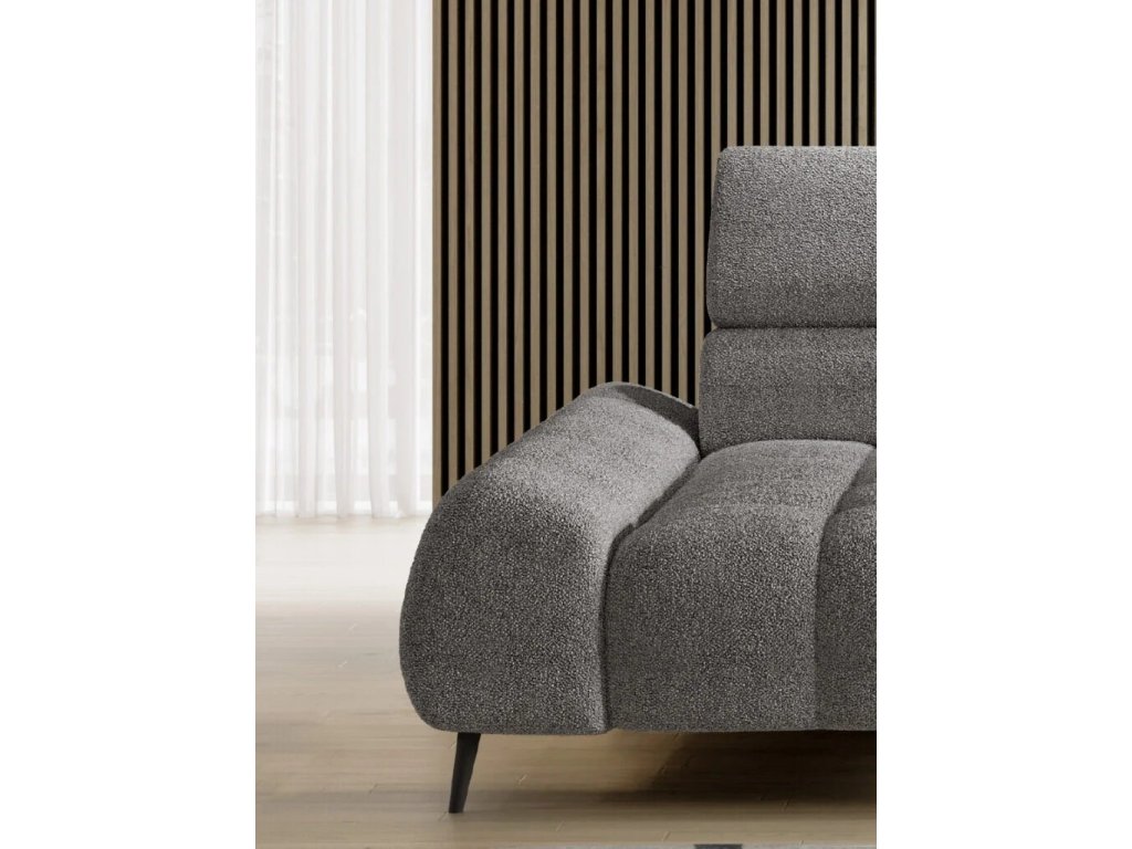 Sedák je pevně prošitý, což dodává sedačce elegantní vzhled a zdůrazňuje precizní zpracování čalounění. Díky elektrickému posuvu sedačka nedisponuje úložným prostorem, zachovává si však vzdušnost a minimalistický design.