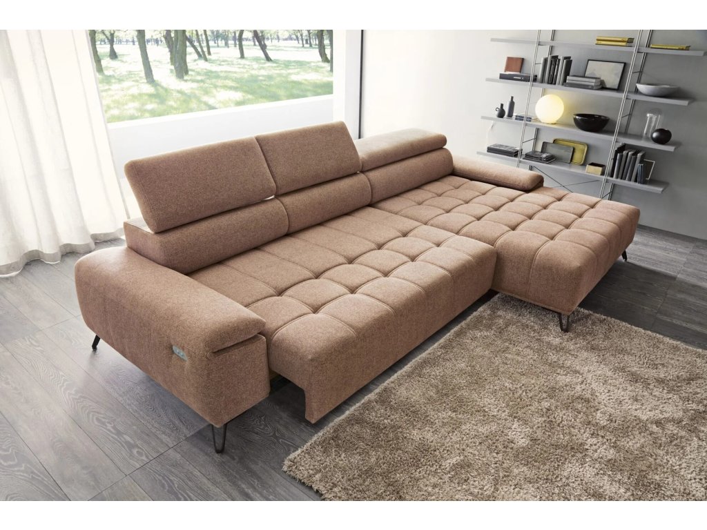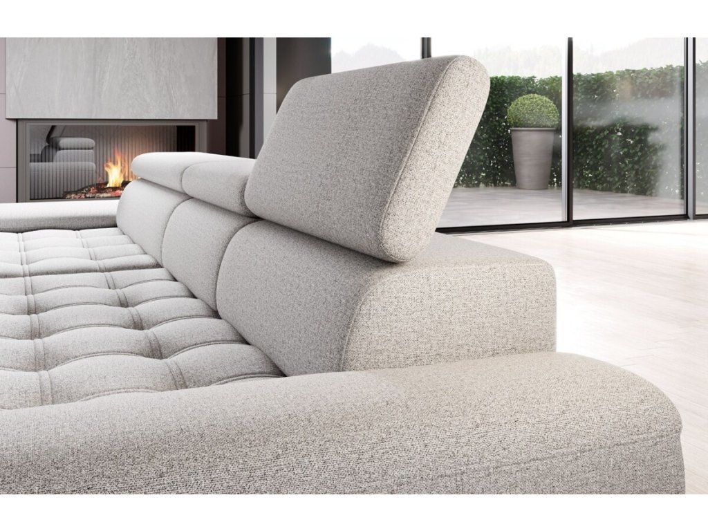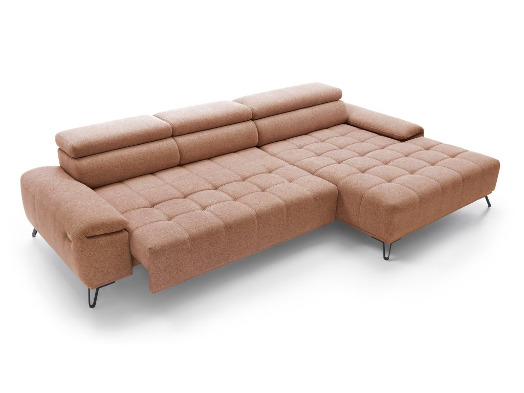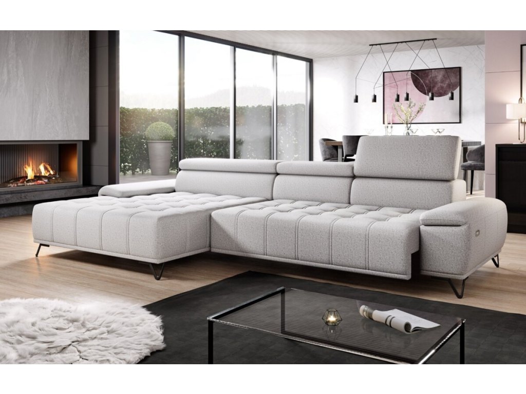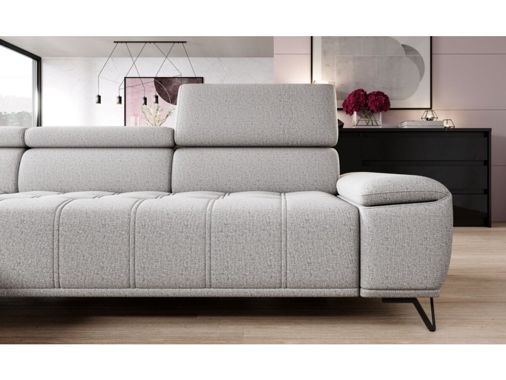 Elegantní čalounění s výrazným prošíváním sedáku a zdobným štěpováním dodává sedačce jedinečný vzhled, zatímco elektrický posuv sedu umožňuje snadné přizpůsobení hloubky sezení od 66 až do 92 cm. Elektrický posuv sedu ovládaný tlačítkem z boku područky, který umožní nastavit hloubku sezení přesně podle aktuální potřeby.