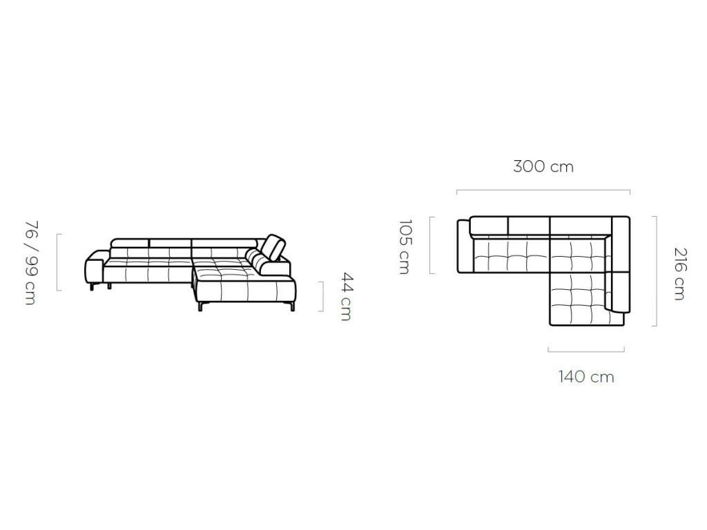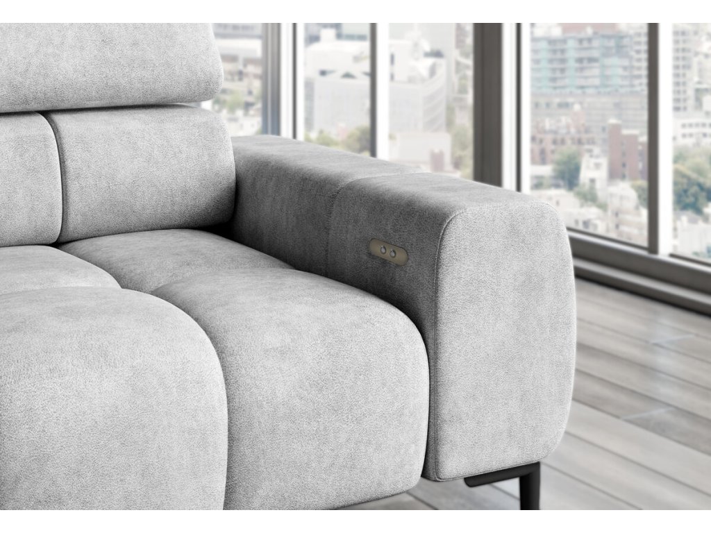 Celočalouněné provedení umožňuje umístění sedačky volně do prostoru – působí moderně a harmonicky z každého úhlu. Doporučujeme ji umístit v blízkosti elektrické zásuvky pro napájení výsuvu sedu.
