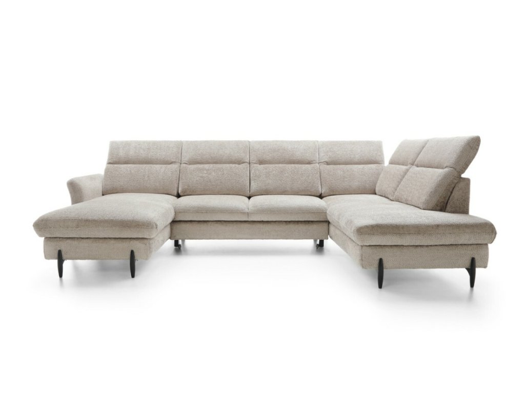 Sedací souprava Sienna I se vyznačuje nadčasovým vzhledem v jemném a elegantním provedení. Prostorná konstrukce se šířkou 338 cm nabízí pohodlné sezení pro celou rodinu i návštěvy. Polohovací záhlavníky (6 ks) umožňují nastavení výšky opěru od 88 do 105 cm, což zajistí dokonalou podporu zad a krku i pro vysoké osoby. Díky své konstrukci působí sedačka vzdušně a moderně, přesto poskytuje vysoký komfort.