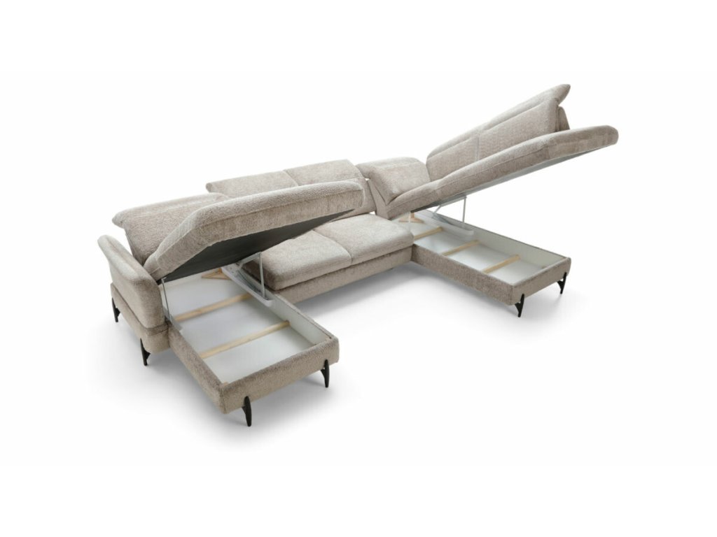 Součástí jsou také dva praktické úložné prostory ukryté pod oběma otomany, vhodné pro uschování lůžkovin, dek či sezónních doplňků.