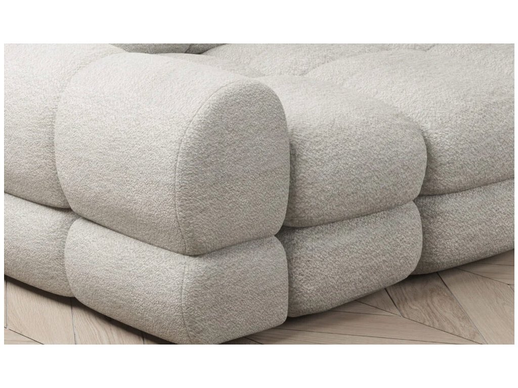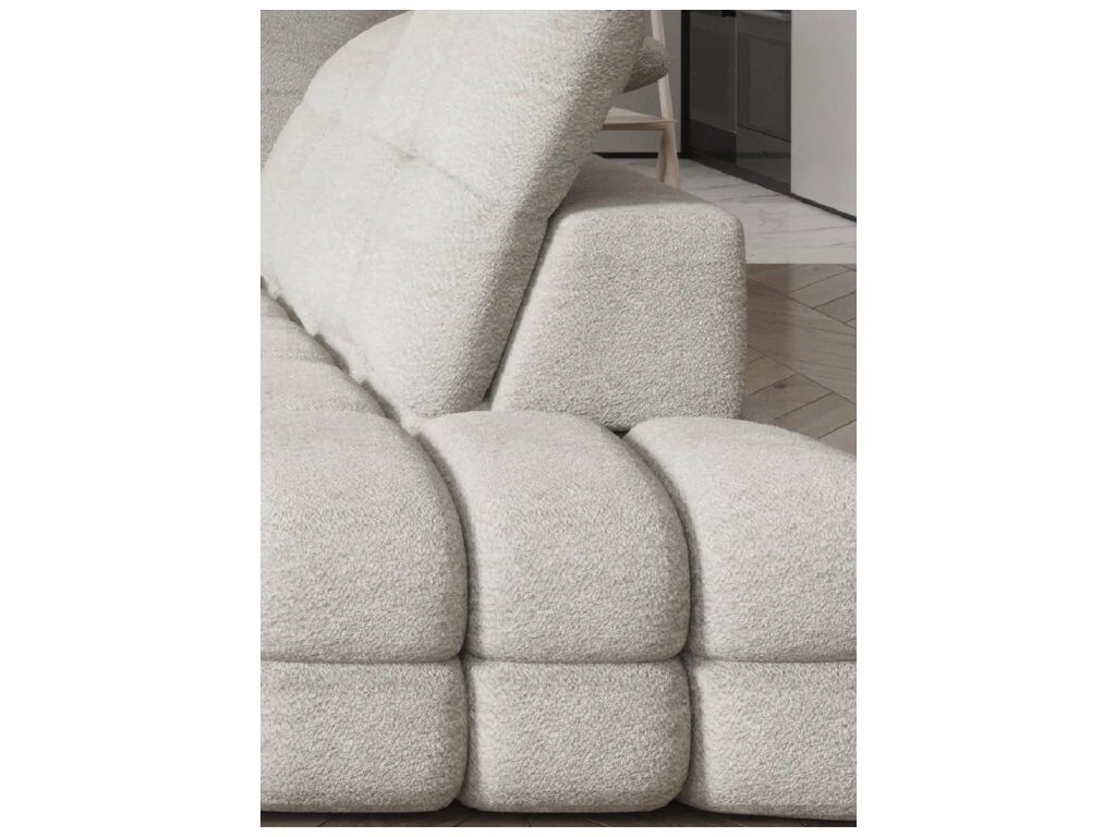 Díky celočalouněnému provedení lze sedačku postavit i volně do prostoru — záda jsou potažena stejnou látkou jako celý korpus.