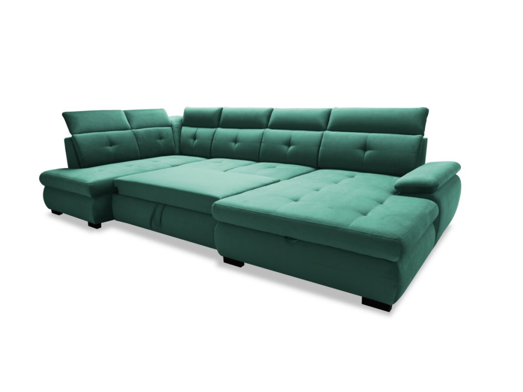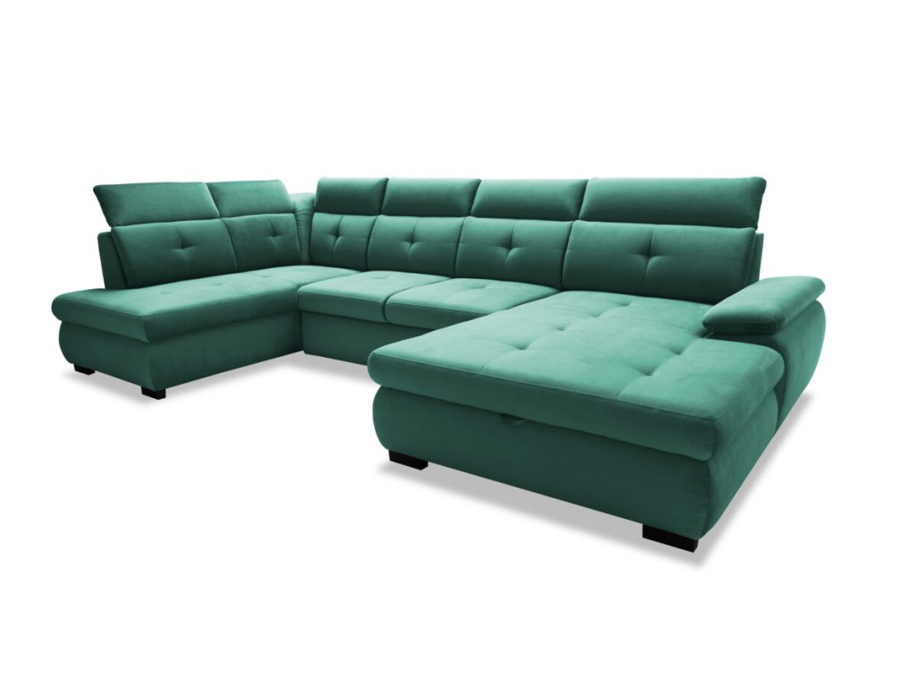 Prostorná sedací souprava nabídne dostatek místa pro vícečlennou rodinu a díky polohovatelným opěrkám hlavy a područky bude i delší posezení příjemné a pohodlné. Sedací souprava má decentně prošívaný sedák a opěradlo, lze jí lehce rozložit na lůžko pro občasné přespání a nechybí ani úložný prostor. Sedací souprava se hodí do různě laděných interiérů a to především díky velkému výběru z látek a odstínů.