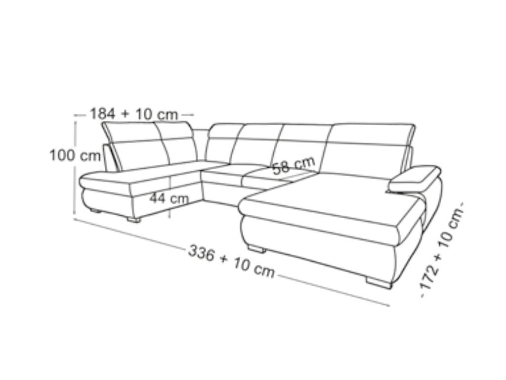 Sklopené opěrky hlavy vyčnívají od opěradla 10 cm, sedací soupravu je tedy vhodné umístit minimálně tuto vzdálenost od zdi.