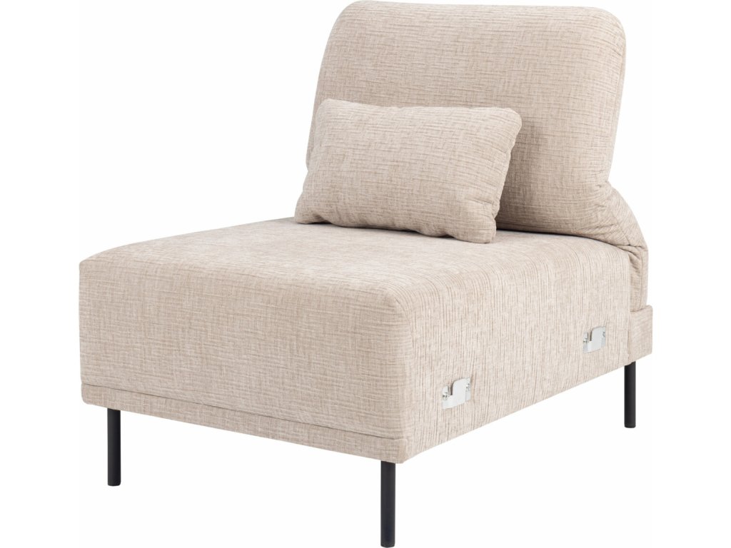 Sedadlo bez područek je určené jako prostřední část sedací soupravy a pohovky. Těchto dílů může být použito několik vedle sebe, záleží na tom, jaká má být výsledná šířka sedací soupravy či pohovky. Kraje tohoto dílu jsou kompatibilní s otomanem v levém i pravém provedení a se sedadly s područkou v levém i pravém provedení, viz související.