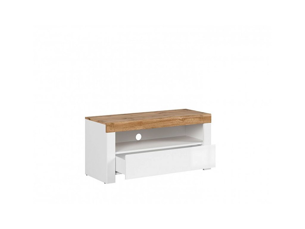 Stylově jednoduchý stolek s výraznou vrchní deskou v provedení dub woltan nabídne prostor na drobnosti v zásuvce a polici. Stolek je primárně určený k umístění televize, proto je na zadní desce výřez na kabely. Na vrchní desce se bude vyjímat bytová dekorace, osvětlení či pokojové květiny.