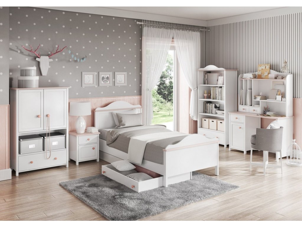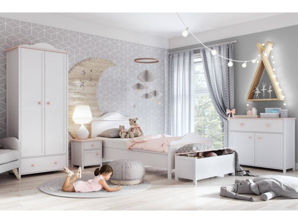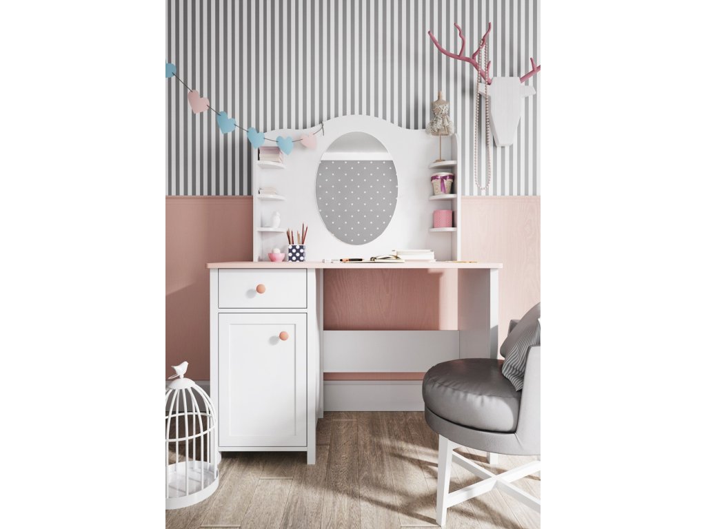 - jemná kolekce nábytku Luna v kombinaci odstínů bílé s pudrově růžovým je navržena pro menší i větší slečny