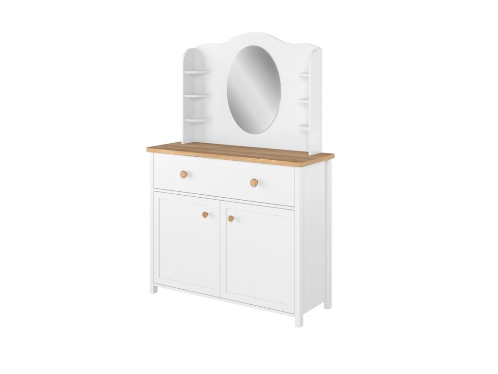 - nástavec se zrcadlem a policemi po stranách umístěte na psací stůl nebo komodu Luna, vytvoříte tak toalení stolek