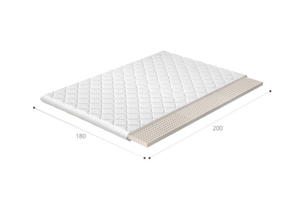 Topper neboli vrchní matrace je vyrobený z latexové pěny, jež je jedním z nejkvalitnějších materiálů pro výplň matrací a topperů. Latexové toppery jsou prodyšné, tvarově stálé a mají vysokou bodovou elasticitu. Tyto unikátní vlastnosti latexu zaručí dlouhou životnost topperu a komfortní odpočinek i pro ty nejnáročnější spáče. Latex je zdravotně nezávadný, antibakteriální a nezapáchá.