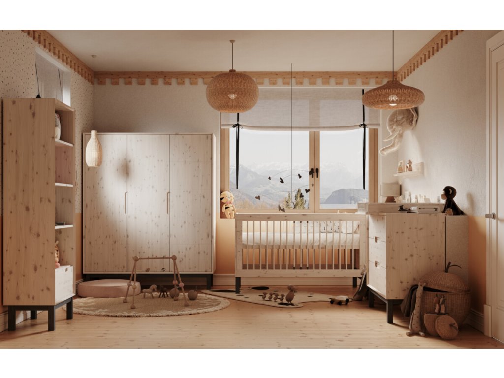 Nábytek je zhotovený v příjemném světlém odstínu, jenž snadno sladíte s různou dekorací i hračkami. Hladký povrch neruší vystouplé úchyty. Celkový dojem nábytku dokreslují výraznější nožičky v tmavě šedé barvě. Dvířka a zásuvky jsou opatřeny systémem silent - tichý dojezd, jenž nebude rušit miminka a děti při spánku a zároveň zaručuje bezpečnost při zavírání. Nábytek je k zakoupení jednotlivě či ve zvýhodněných setech.
