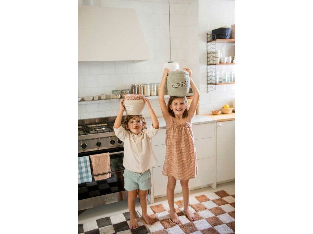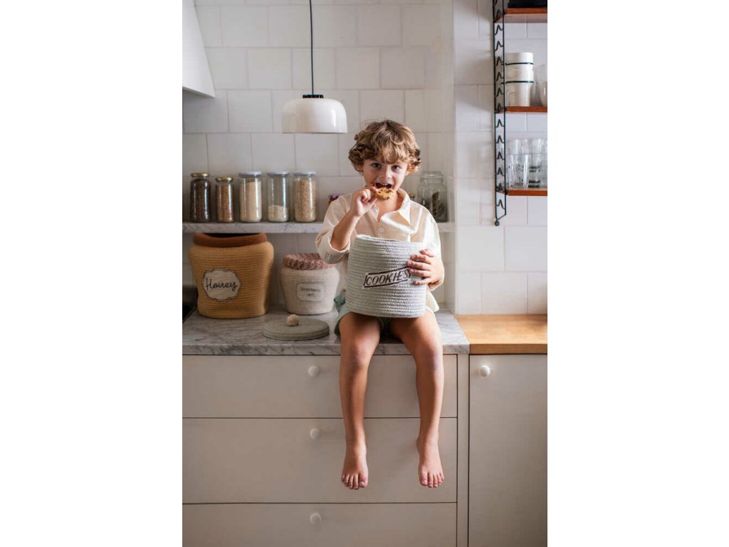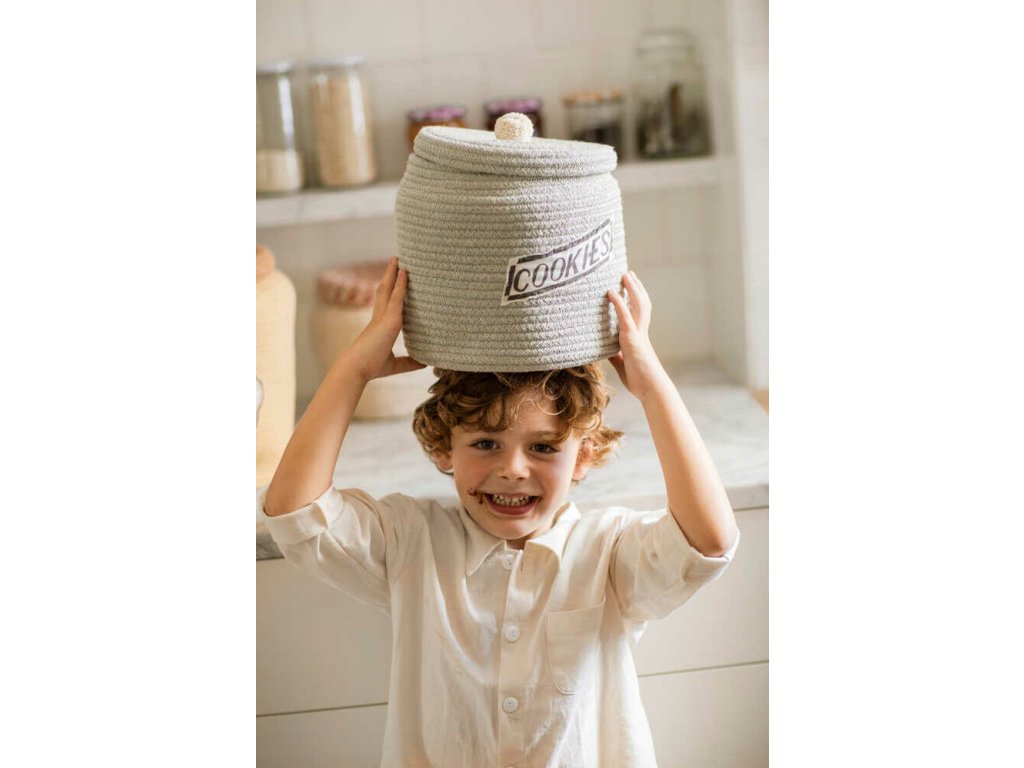 Dóza na sušenky jako menší úložný koš pro děti, do které si mohou ukrýt drobnosti. Stylový koš perfektně ladí do kolekce věnované kuchyni a malým kuchařům a kuchařkám.