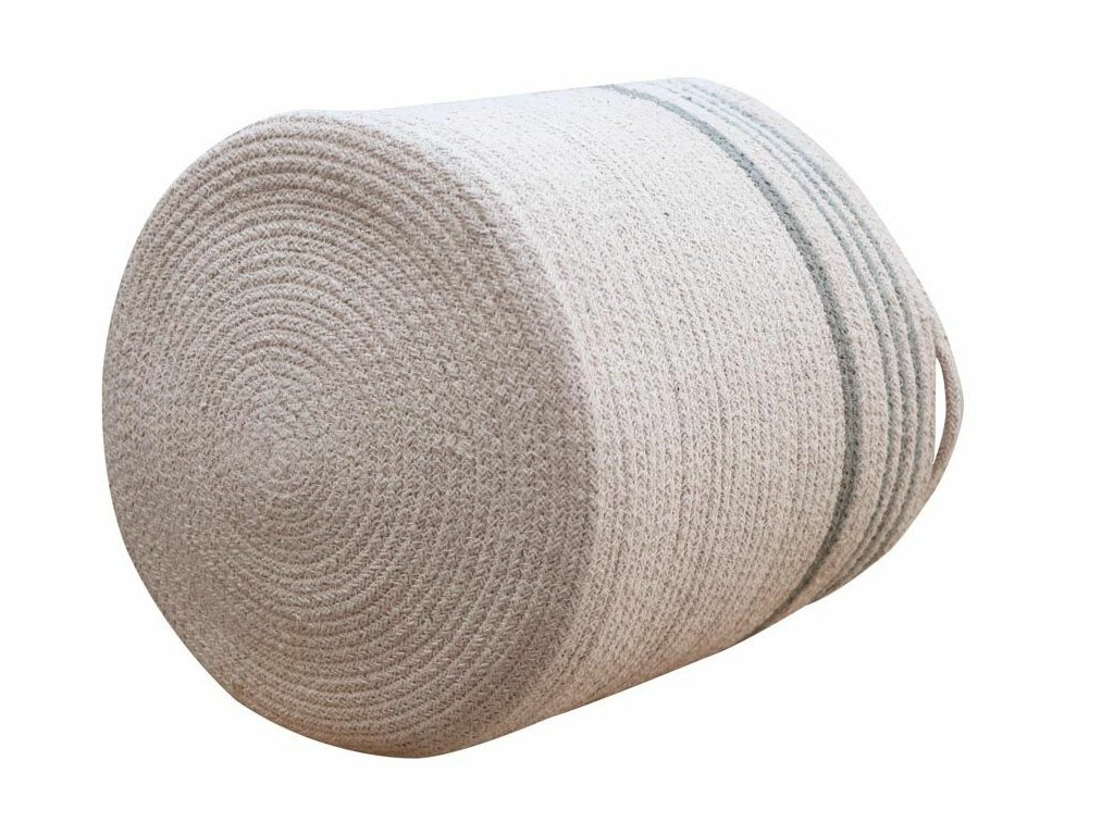 Praktický koš k uložení drobných věcí, textilu nebo hraček, stylově doladí každý pokoj. Koš v přírodní barvě se světle modrými pruhy, nalezne praktické využití v každé místnosti.
