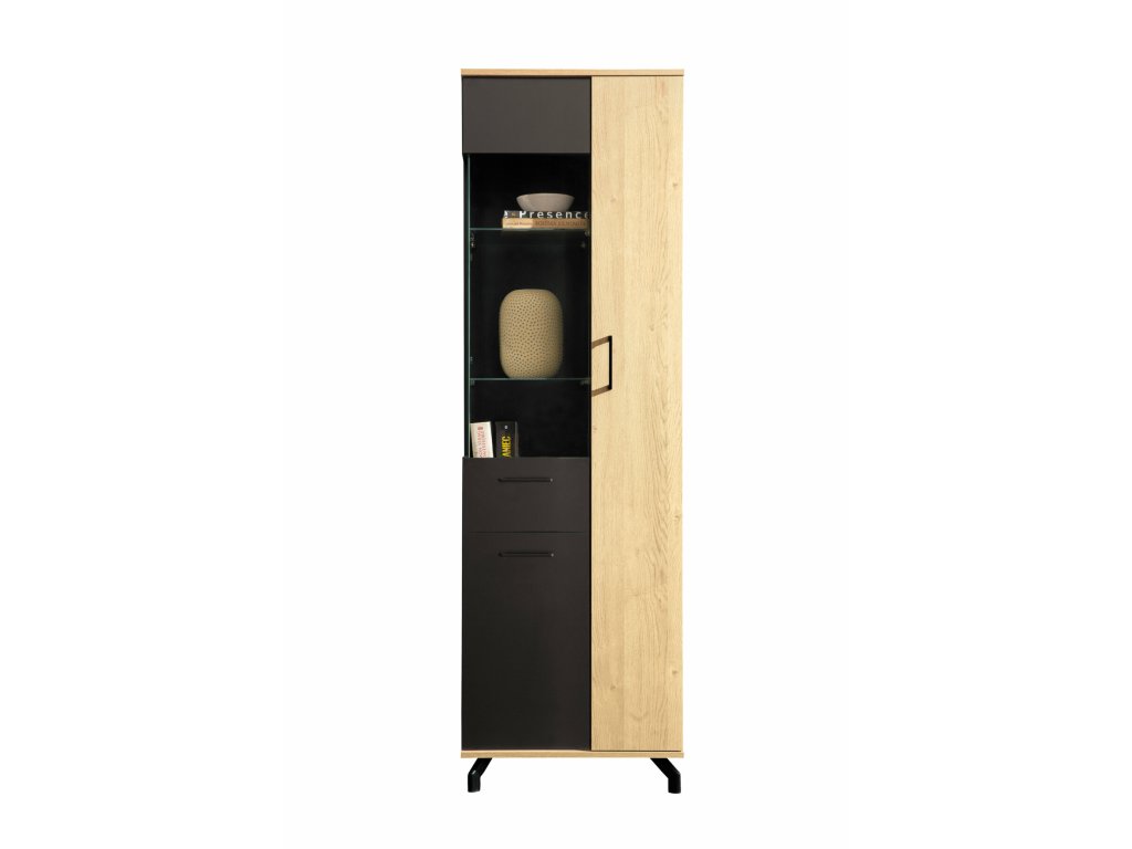 Vysoká Vitrína Madison elegantně plní hned několik funkcí. Svým uživatelům nabídne úložný prostor v podobě zásuvek a polic za zavřenými dvířky a místo v prosklených policích pro bytovou dekoraci k doladění interiéru.