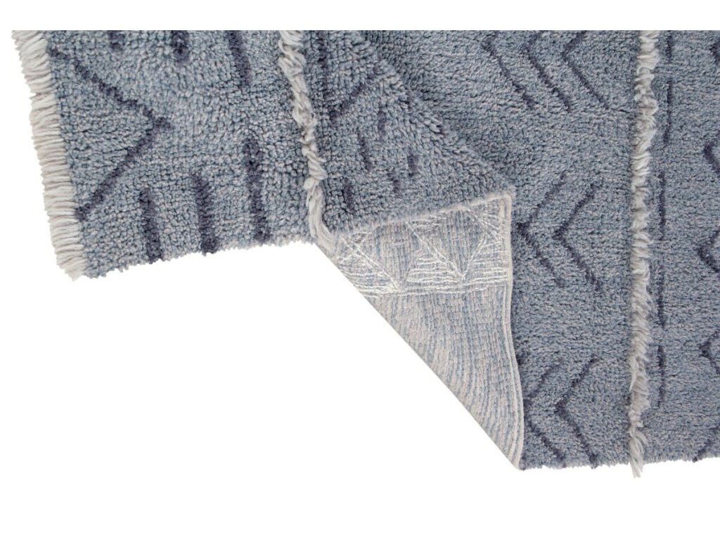 Ručně tkaný, vlněný koberec Lakota Night v kouřově modré barvě, od světoznámé značky Lorena Canals, se vzory ve stříbrošedé barvě. Kombinace krátkého a dlouhého vlasu tvoří plastický vzhled koberce, který je ozvláštněn o etnické symboly v nerušivých barvách. Neobyčejné zpracování koberce zaujme v každé místnosti a dodá interiéru pocit tepla a útulnosti. Díky možnosti praní v pračce udržíte koberec snadno v čistotě a bez obav jej můžete umístit i do venkovních prostor.