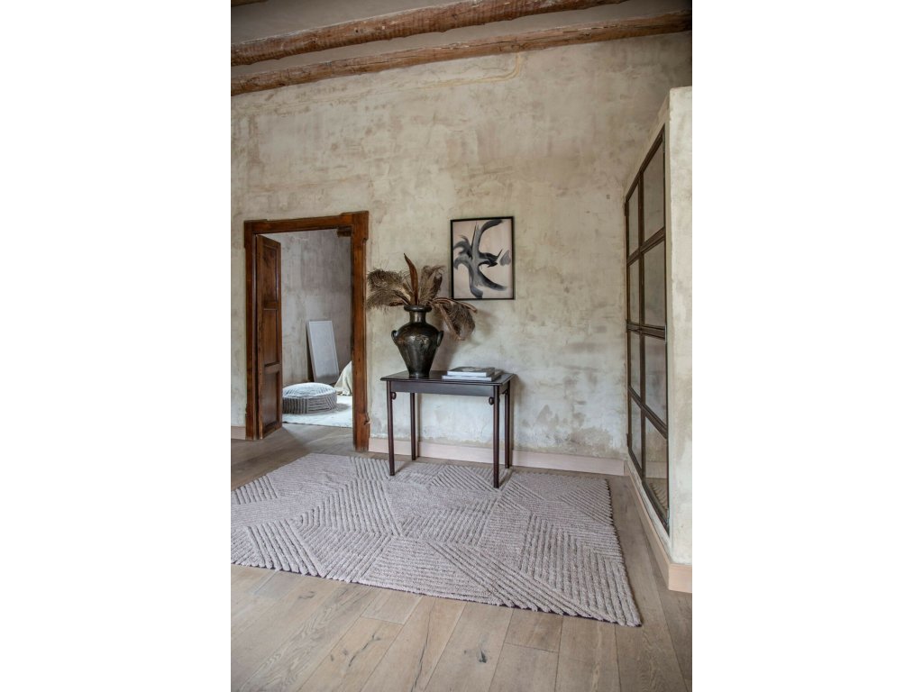 Ručně tkaný vlněný koberec v odstínech šedé barvy, bude luxusním a praktickým doplňkem v každém interiéru. Originální vzhled koberce zaujme v každé místnosti a vnese do prostoru útulný a elegantní nádech. Díky možnosti praní v pračce udržíte koberec snadno v čistotě a bez obav jej můžete umístit i do venkovních prostor.